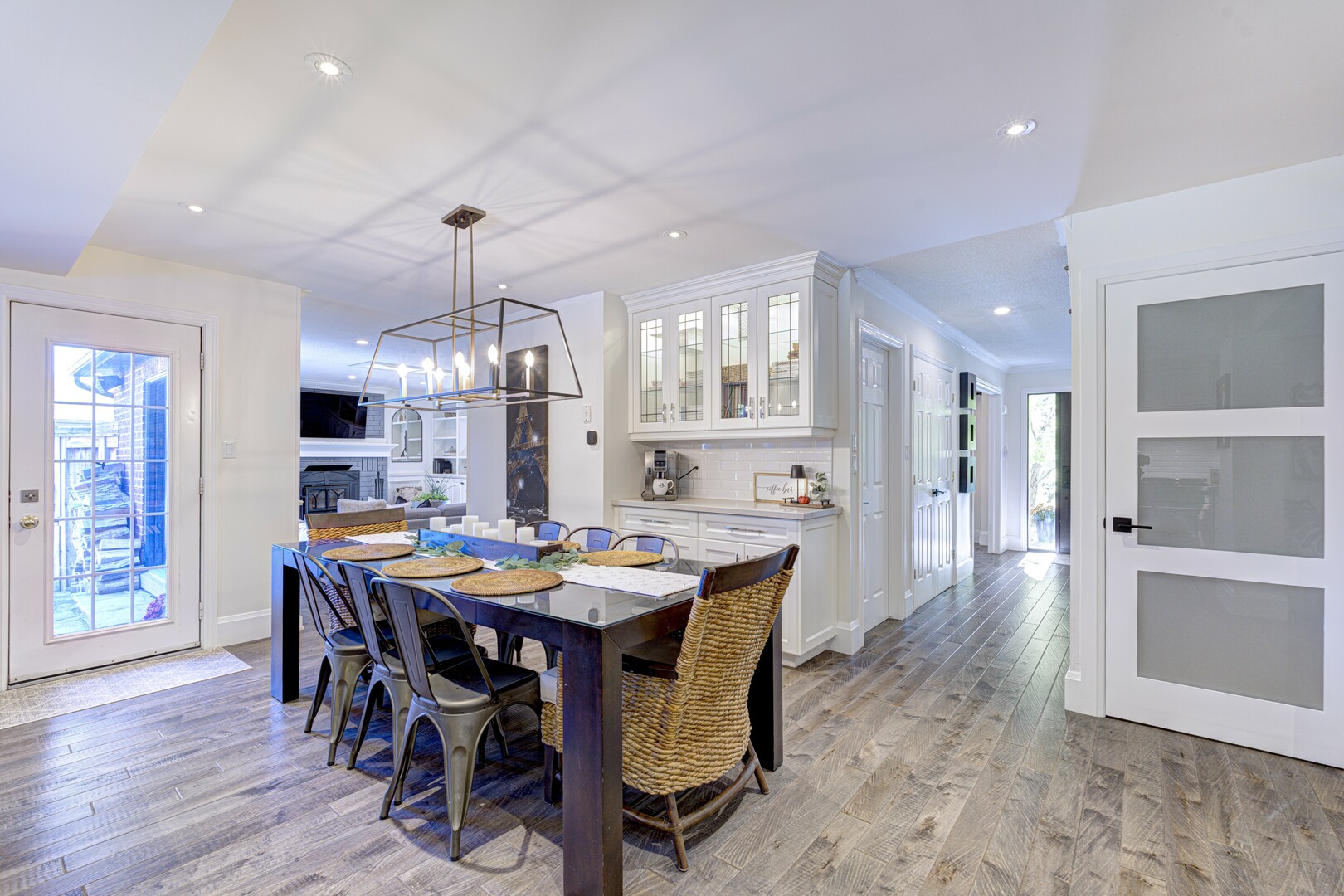 Step inside to a bright, flowing layout designed to maximize natural light. The chef-inspired kitchen showcases a stainless steel gas stove, double ovens, fridge, and built-in dishwasher, with abundant prep space, custom cabinetry, and not one but two walkouts to the backyard retreat. The elegant dining area and stylish living room flow seamlessly together, while a dedicated office off of the front entrance makes working from home effortless.