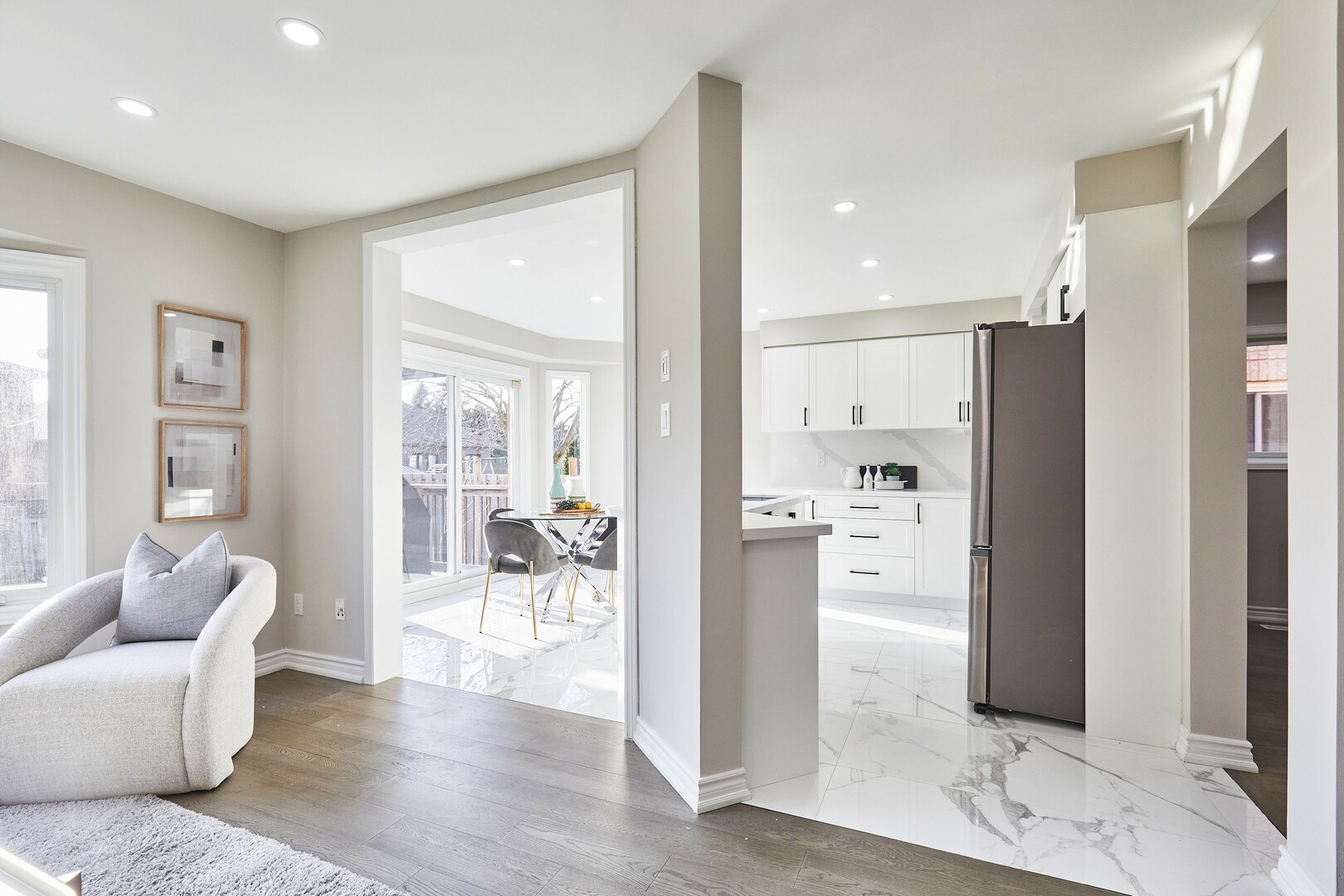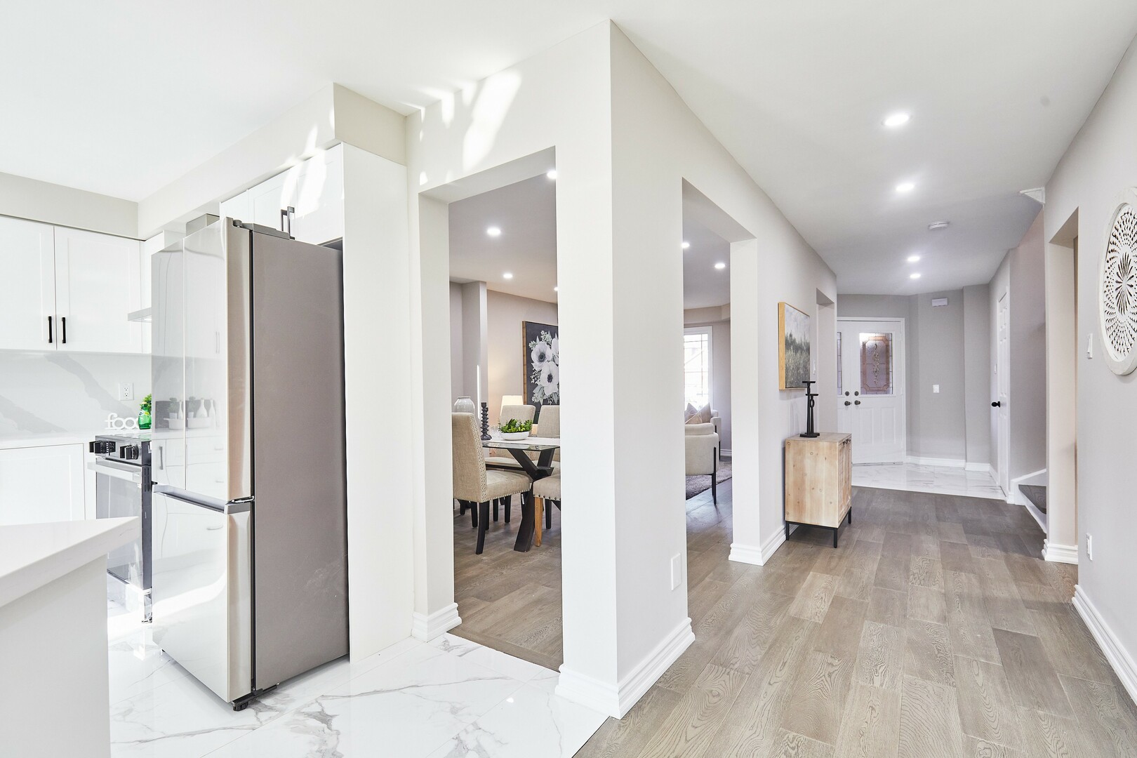 * 4 +1 Bedroom 3 Bathroom Detached Home In Pringle Creek Whitby * Totally Renovated * New Hardwood Floors on Main & Second * New Kitchen with Quartz Counters & Backsplash * Breakfast Area with Walk-out to Deck * New Bathrooms * Freshly Painted * Entrance Through Garage * New Oak Stairs With Wrought Iron Pickets * Primary Bedroom With 6 Pc Ensuite * Front Interlock Walkway * Finished Basement With Bedroom, Rec Room, Den ad New Vinyl Floors * Steps to Catholic Elementary Schools & Sinclair High School, Parks, Shops, Hwy 401, & More * Furnace & Central Air (8 Yrs) Roof (15 Yrs) * Windows (10 Yrs)