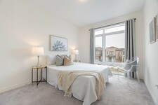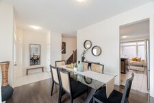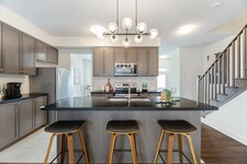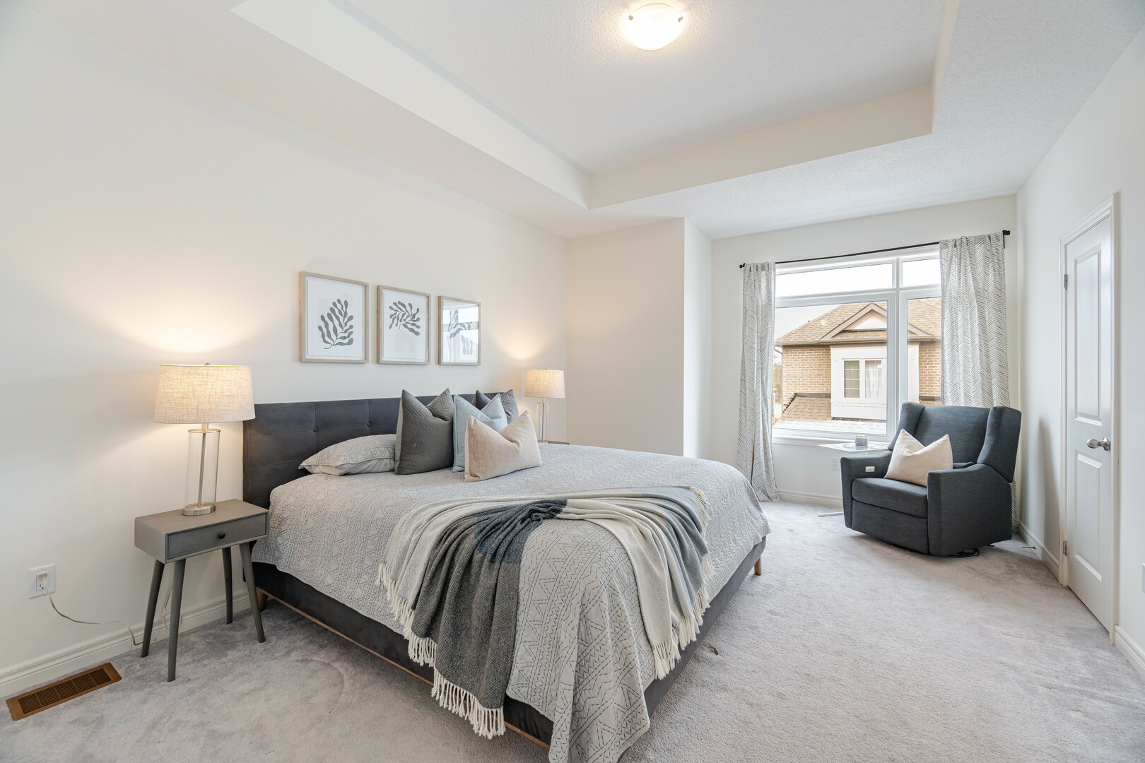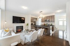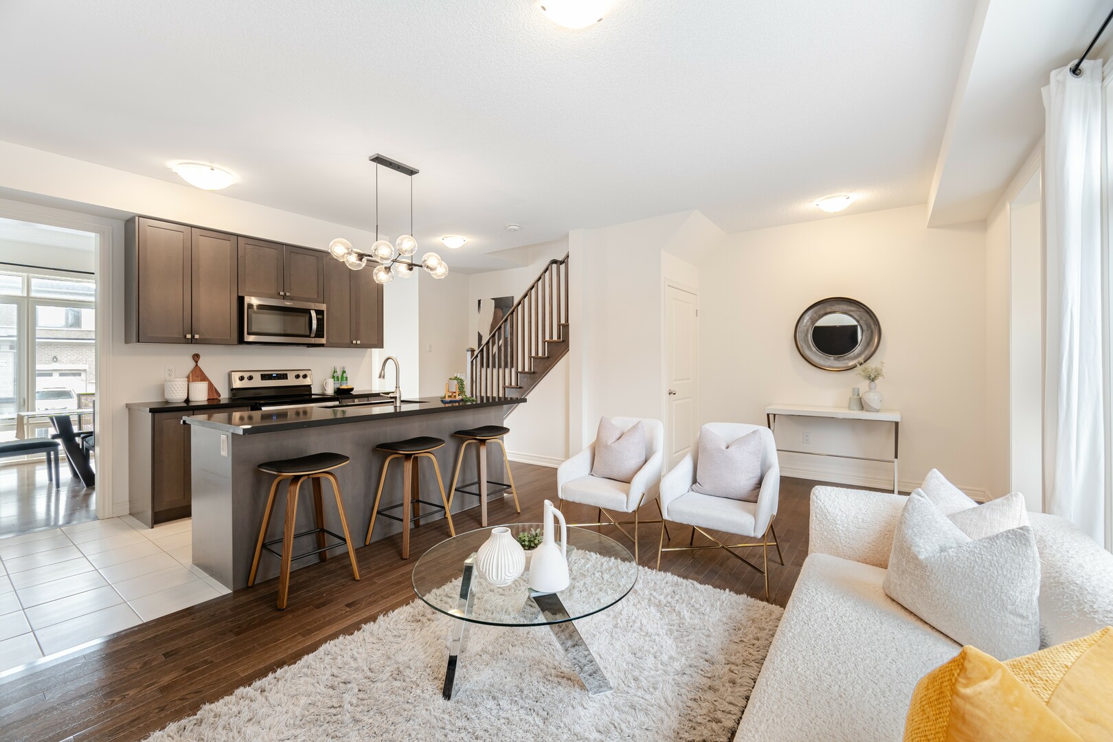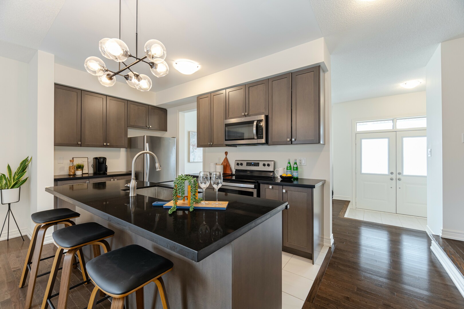 The open-concept kitchen is perfect for entertaining, showcasing sleek quartz countertops and ample cabinetry. Oak stairs lead you to the upper level where the luxurious primary suite awaits—complete with a large walk-in closet, a spa-like 5-piece ensuite, and a cozy sitting area.