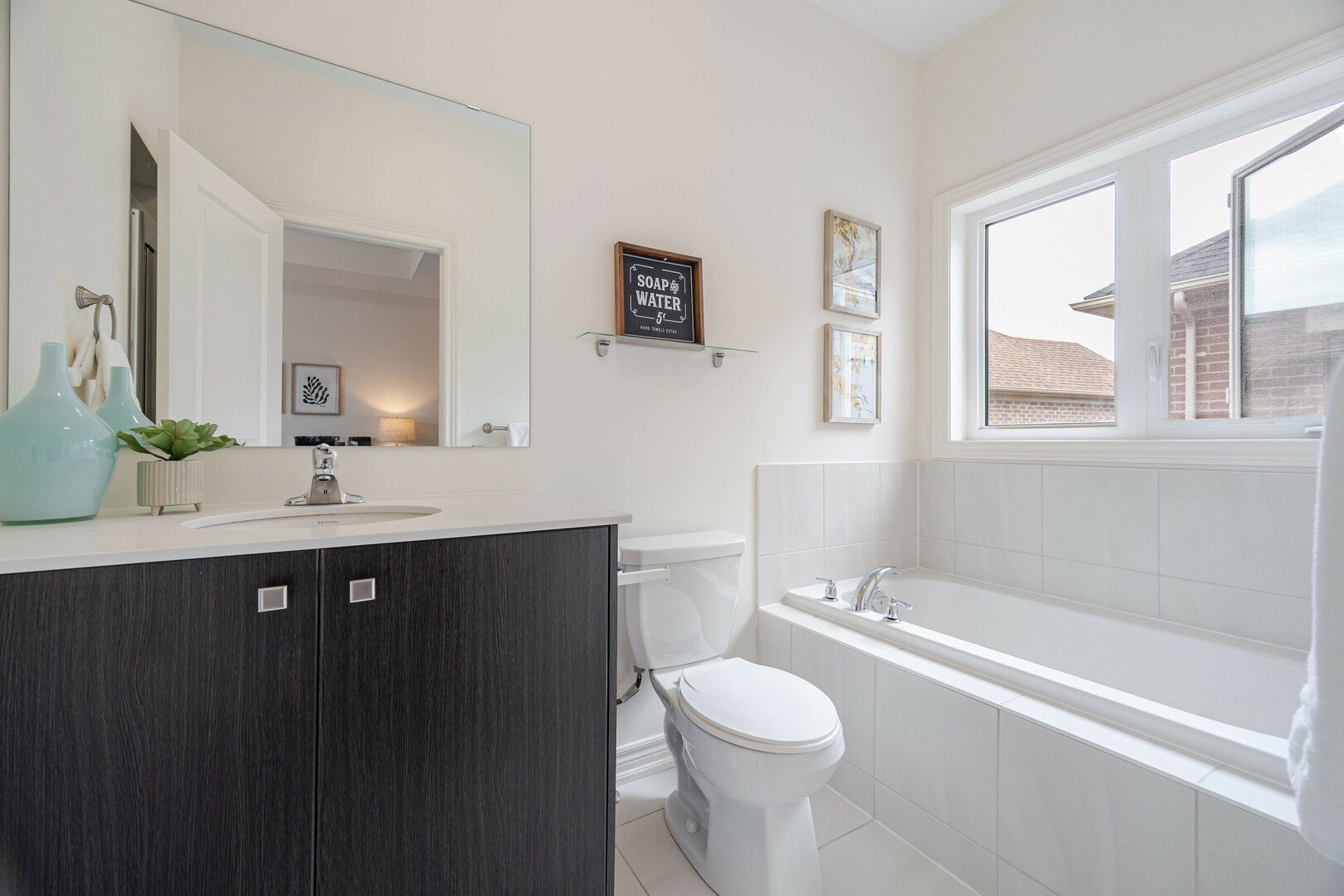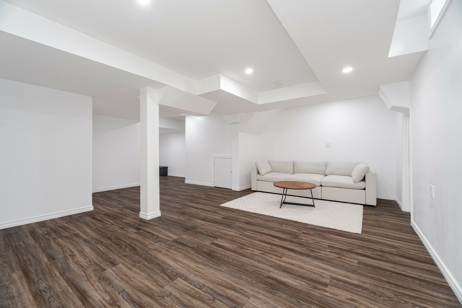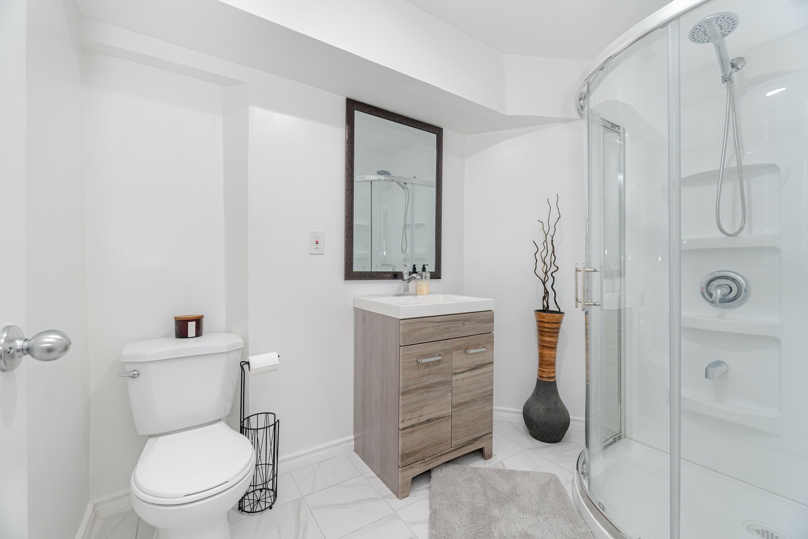 The finished basement includes a modern full bathroom, making it ideal for a guest suite, home office, or recreation space.
