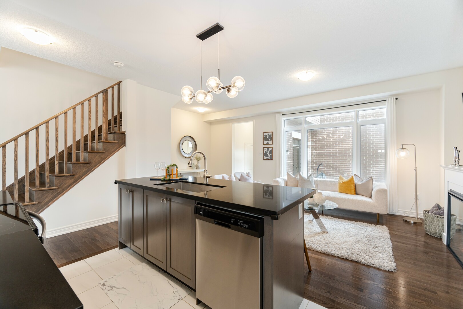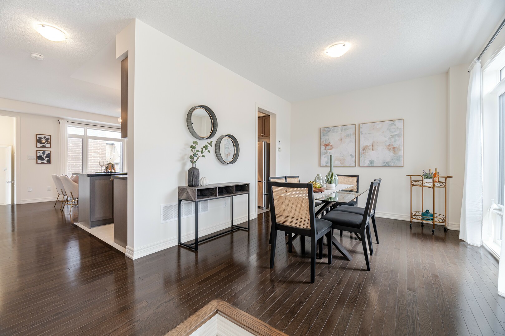 Welcome to this stunning and spacious 4-bedroom, 4-bathroom freehold end-unit townhouse located in the heart of Whitby. Designed for both comfort and style, this beautiful home features soaring 9-foot ceilings and elegant hardwood flooring throughout the main level.