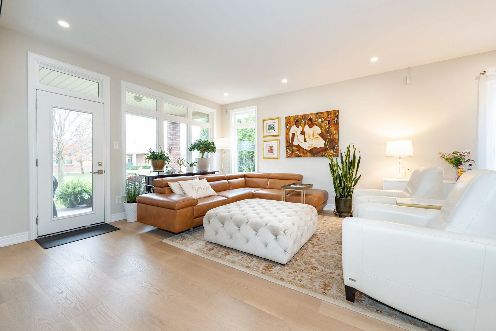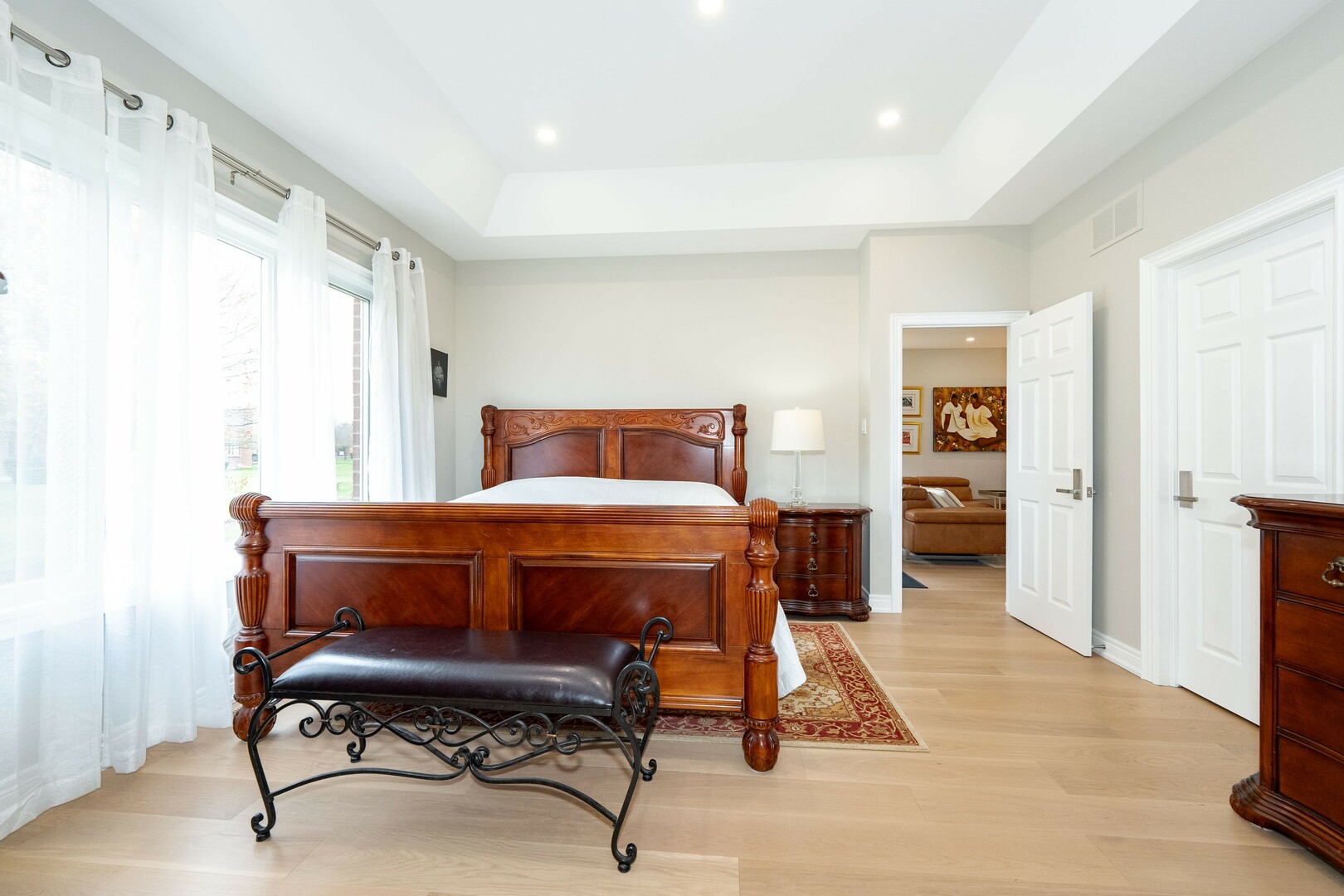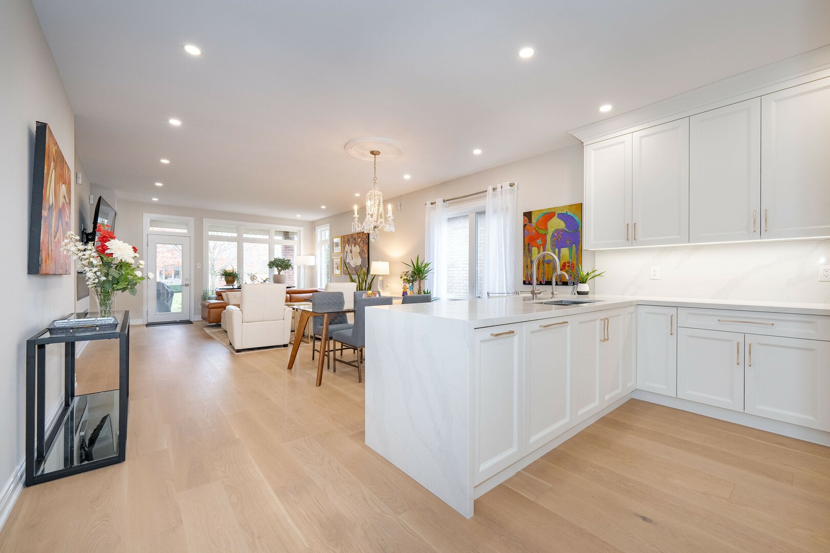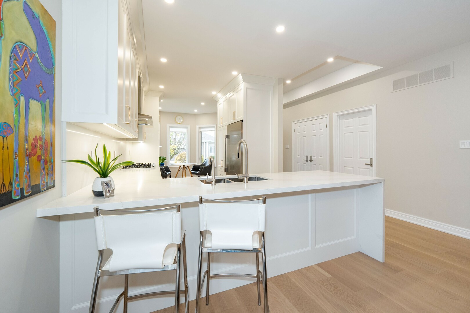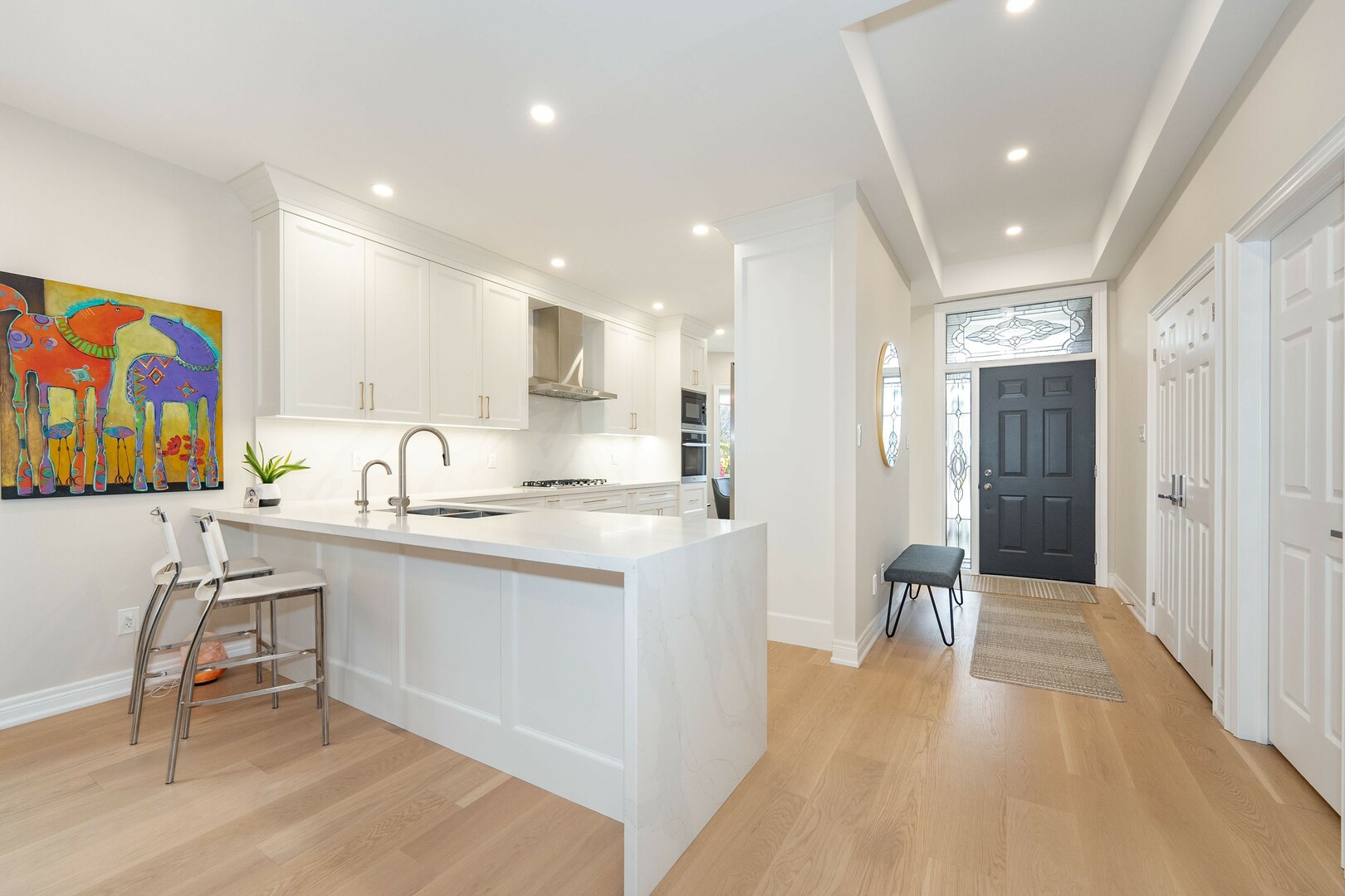 A Real Showstopper! Beautifully renovated 2023-2024 Pinehurst Model 1700 sf. Turn key condition. Modern, Contemporary, Elegant, Open concept floorplan. 9 ft smooth ceilings, LED pot lites, 7.5 inch Canadian Vintage Solid White Oak plank flooring through out the main floor (except bathrooms). Must see! New Designer Kitchen, Modern Built in Cabinetry, under cabinet LED lighting, Quartz Counter, Backsplash/Waterfall, all created for modern accessibility and upmost functionality, Blum metal pull outs, soft close drawers/doors, pantry. Spice pullout and tray holders. Top of the line built in Miele appliances, Frigidaire Professional Series Counter Depth Fridge. Bungalow sits on a Quiet street, backing south/west to a serene, natural private setting. Patio has a covered roof and BBQ area to enjoy entertaining, step out to enjoy Ballentrae sunsets and the outdoors.Enjoy the bright Living Room, electric fireplace/heat comfort feature, amazing space for your enjoyment and entertaining family & friends.Two full unique luxurious baths on main floor, one with walk in shower and the other, Bain Ultra Air Jetted Spa Tub and Shower both with porcelain tiles, imported vanities, medicine chest to maximize storage space, tempered glass dividers, accessories. Enjoy the lifestyle within the Ballentrae Golf & Country Club, surrounded by the quiet beauty of the golf course setting, recreation centre, indoor hot tub/salt water swimming pool, gym , tennis and bocce courts. Close to Musselman's Lake, Main St Stouffville and the convenience of Aurora/Newmarket nearby. Pls see: Inclusions, Upgrades & Maintenance Info attached with feature sheet to listing. You will love it ! **EXTRAS** 9 ft ceilings main floor, custom built closets with organizers, luxury spa-like baths, save on electric bills with new LED lighting and 60in electric fireplace/heat, Coffered ceilings front entry and Primary bdrm