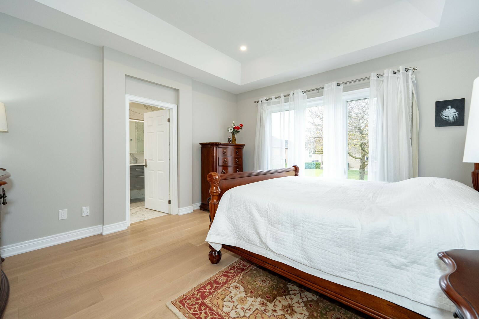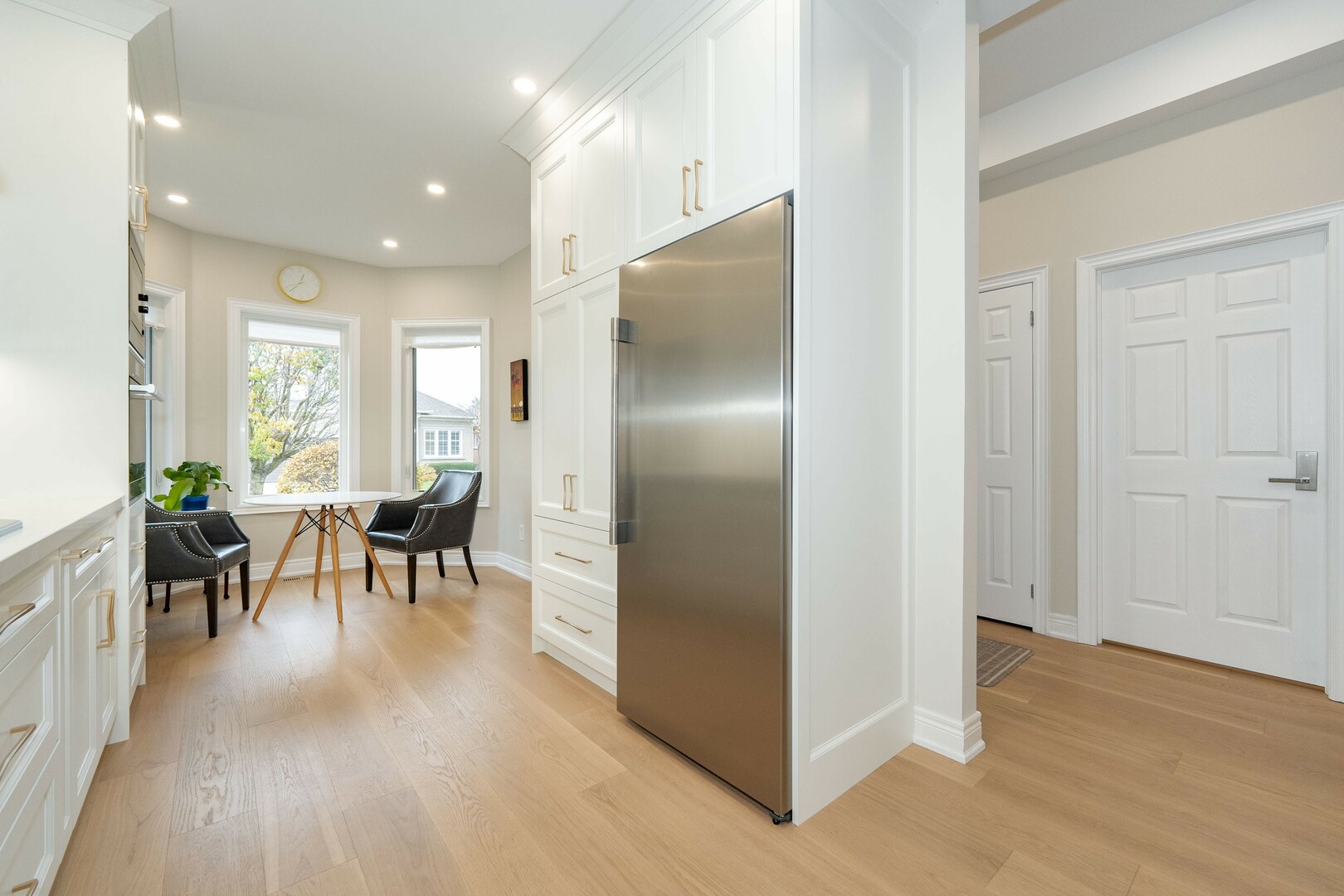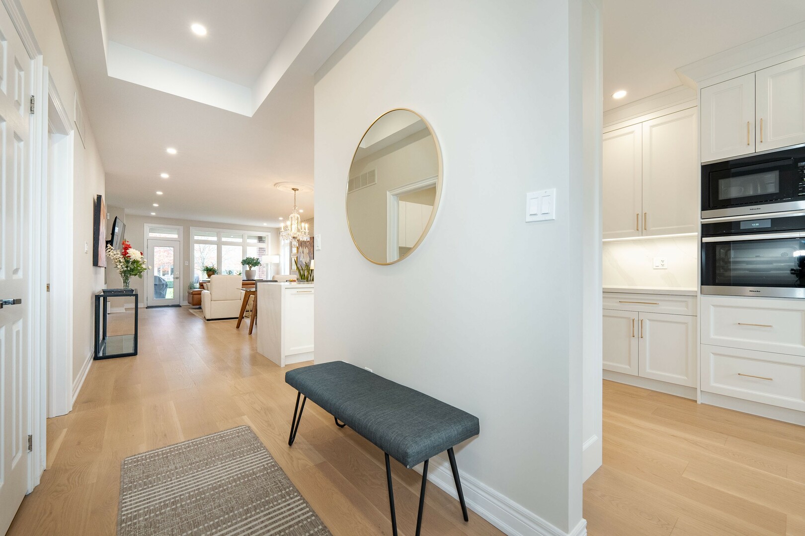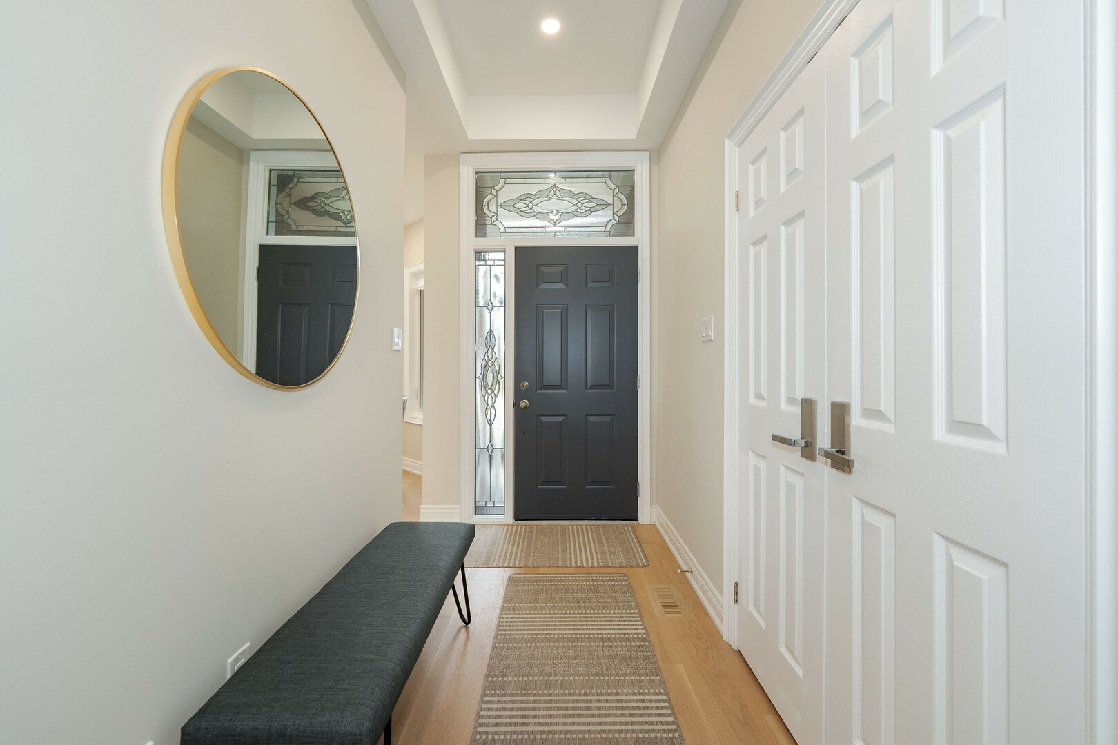 A Real Showstopper! Beautifully renovated 2023-2024 Pinehurst Model 1700 sf. Turn key condition. Modern, Contemporary, Elegant, Open concept floorplan. 9 ft smooth ceilings, LED pot lites, 7.5 inch Canadian Vintage Solid White Oak plank flooring through out the main floor (except bathrooms). Must see! New Designer Kitchen, Modern Built in Cabinetry, under cabinet LED lighting, Quartz Counter, Backsplash/Waterfall, all created for modern accessibility and upmost functionality, Blum metal pull outs, soft close drawers/doors, pantry. Spice pullout and tray holders. Top of the line built in Miele appliances, Frigidaire Professional Series Counter Depth Fridge. Bungalow sits on a Quiet street, backing south/west to a serene, natural private setting. Patio has a covered roof and BBQ area to enjoy entertaining, step out to enjoy Ballentrae sunsets and the outdoors.Enjoy the bright Living Room, electric fireplace/heat comfort feature, amazing space for your enjoyment and entertaining family & friends.Two full unique luxurious baths on main floor, one with walk in shower and the other, Bain Ultra Air Jetted Spa Tub and Shower both with porcelain tiles, imported vanities, medicine chest to maximize storage space, tempered glass dividers, accessories. Enjoy the lifestyle within the Ballentrae Golf & Country Club, surrounded by the quiet beauty of the golf course setting, recreation centre, indoor hot tub/salt water swimming pool, gym , tennis and bocce courts. Close to Musselman's Lake, Main St Stouffville and the convenience of Aurora/Newmarket nearby. Pls see: Inclusions, Upgrades & Maintenance Info attached with feature sheet to listing. You will love it ! **EXTRAS** 9 ft ceilings main floor, custom built closets with organizers, luxury spa-like baths, save on electric bills with new LED lighting and 60in electric fireplace/heat, Coffered ceilings front entry and Primary bdrm