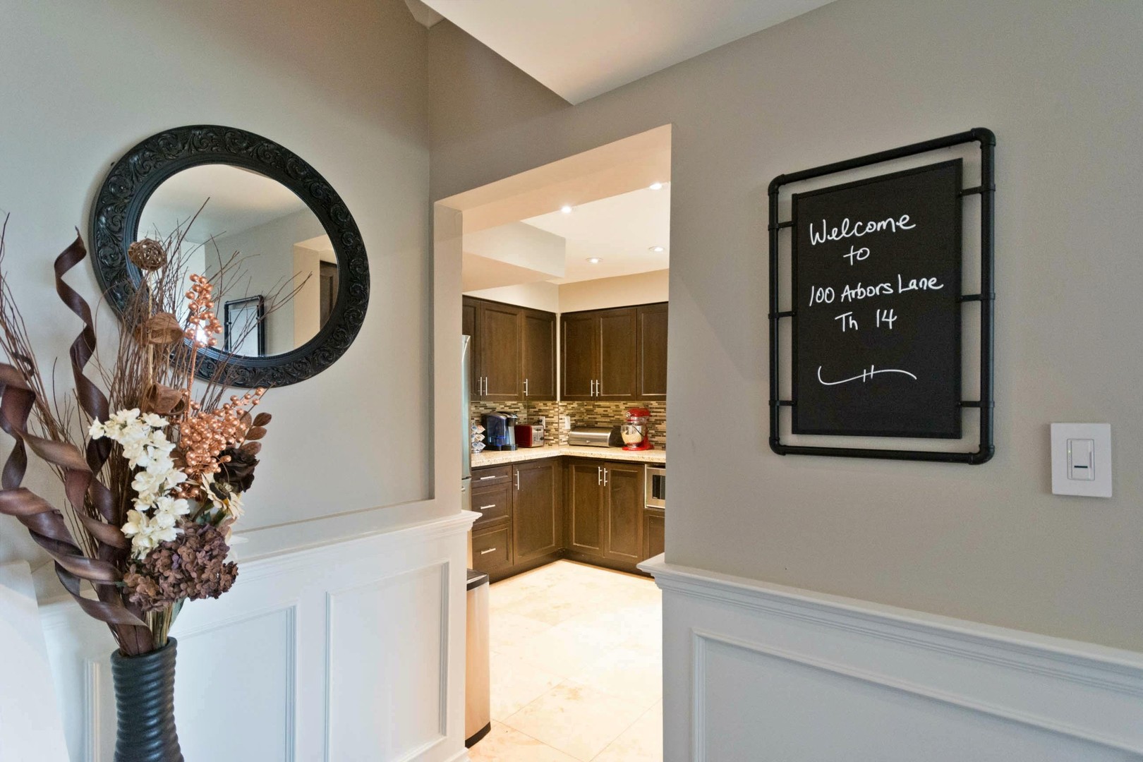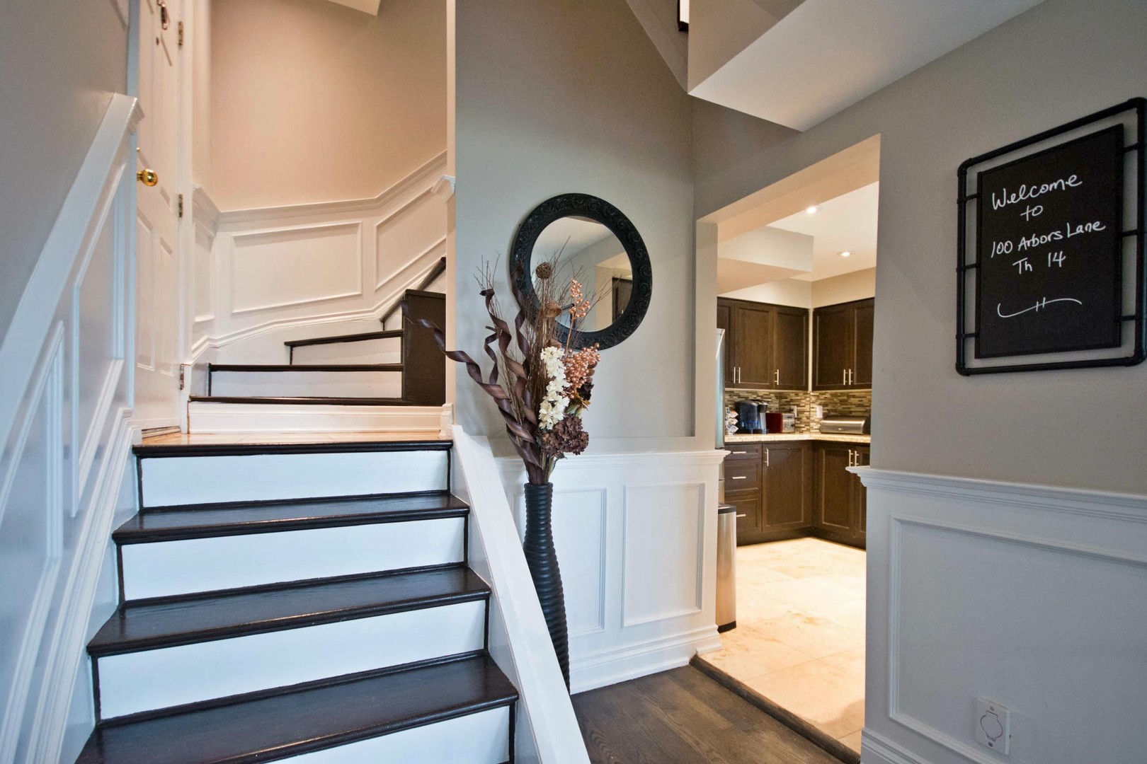 Welcome to 100 Arbors Lane, Townhouse #14. This charming, bright & beautiful 3 bedroom, 3 bathroom end unit condo town home is located in a very desirable Woodbridge area off Hwy 7 & Islington Avenue. This spacious, approximately 1900 sq ft town has stainless steel appliances, granite counter tops, plenty of cupboards, heated floors in the kitchen & dining area with soaring 21 ft cathedral ceiling & floor to ceiling windows! Just some of the features this home includes are hardwood flooring throughout, freshly painted, wainscoting, stonewall with a gas fireplace & a 2nd floor laundry room with plenty of storage space. The spacious master bedroom has floor to ceiling windows, a walk-in closet & ensuite bath. This home comes with 2 owned parking spaces & a locker. Arbors Lane has great amenities for the residents to enjoy -- an indoor pool, hot tub, sauna, exercise room, party room, lounge & visitors parking. Located in the very beautiful Market Lane area - just steps to shops, restaurants & so much more! Contact Mary Rombis today for a private showing - this is definately a must see home!!