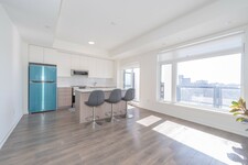 This stunning three bedroom, two-bathroom suite by Daniels First Home, Keelesdale is just one year old and offers an incredible investment opportunity. The building is packed with top-tier amenities, including fitness center, party rooms, co-working space, visitor parking, pet wash, potting shed, Garden plot, and a BBQ area. The sleek modern kitchen is equipped with stainless steel appliances, including a 30" stainless steel refrigerator, stove, upgraded microwave, dishwasher, and stackable washer & dryer. Conveniently located just minutes from the metro, Walmart, Canadian tire, top ranked schools, restaurants, bank, close to highway 401/400 and just a short walk from the Eglinton LRT. Total Area: 1121 sqft Suite Area: 973 sqft Outdoor Area: 148 sqft